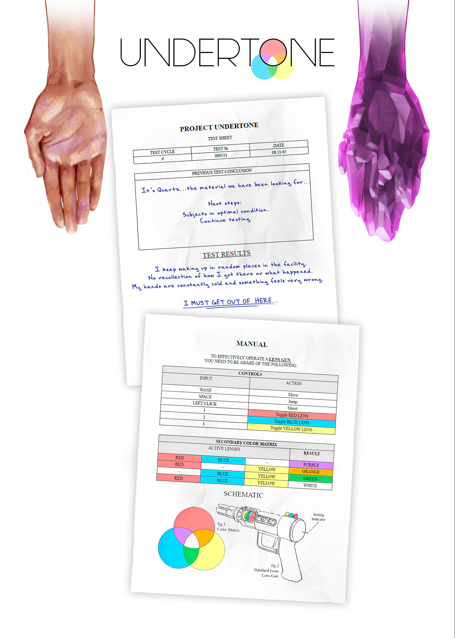The 2D art for the manual and background looks awesome, explains the mechanics well and gives a bit of lore. It would be nice if it was implemented in the game somehow.